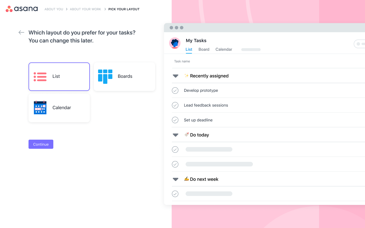 We validated our user segmentation hypothesis by running an experiment with an objective page, asking users to select their purpose in Asana. The results showed that 36% use Asana for goals, portfolios, or personal task management. However, our onboarding isn't guiding them to the right place, presenting a big opportunity for improved adoption.